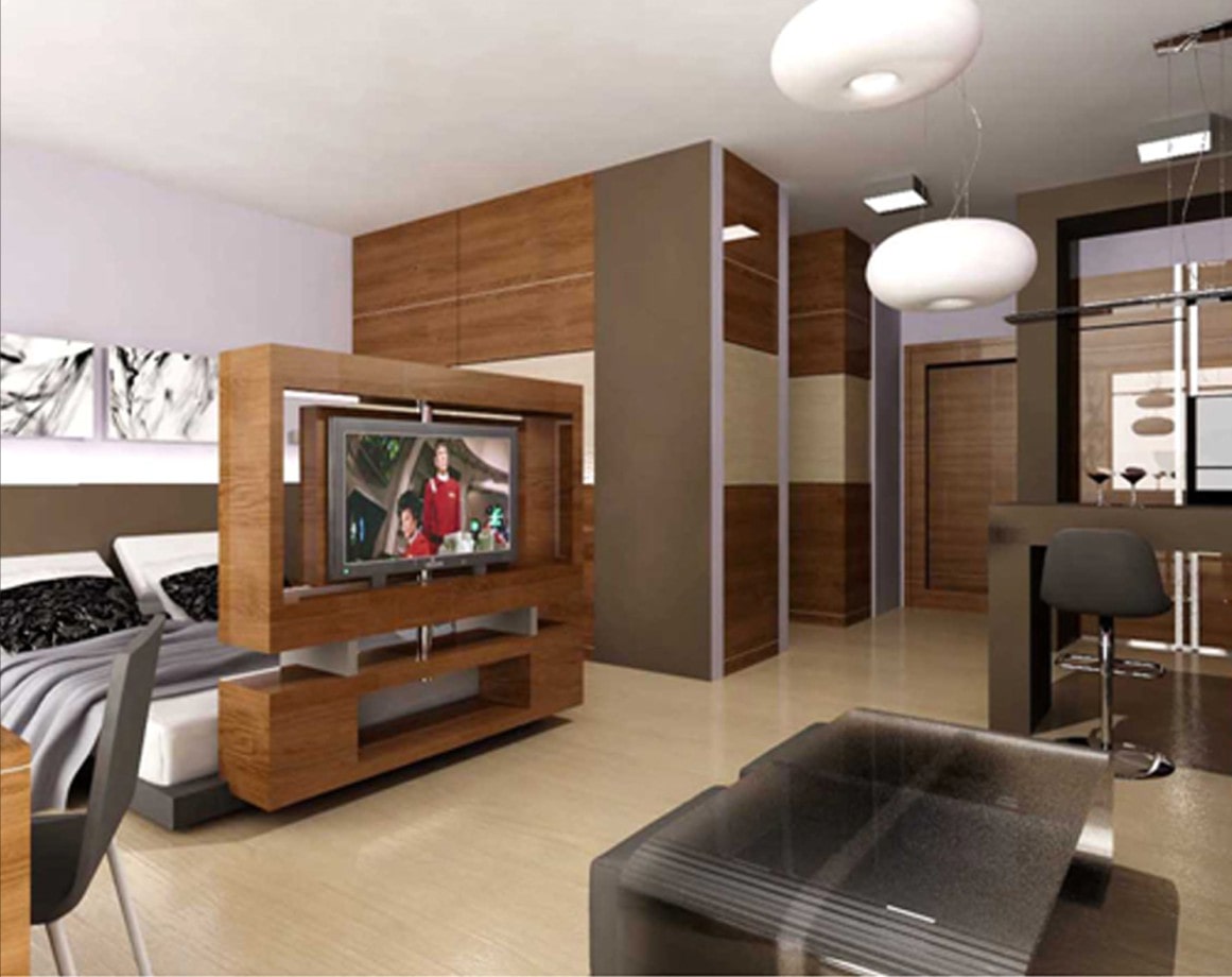 Projekt aranżacji wnętrz modelowego mieszkania jednopokojowego/studio.