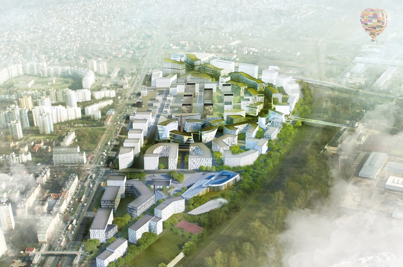 Praca konkursowa, przedstawiająca koncepcję zagospodarowania terenów pofabrycznych przy ulicy Radzymińskiej, została wyróżniona przez jury. Projekt urbanistyki analizowanego kwartału opiera się na idei stworzenia płynnej przestrzeni, której formę kształtuje nieortogonalny układ budynków.