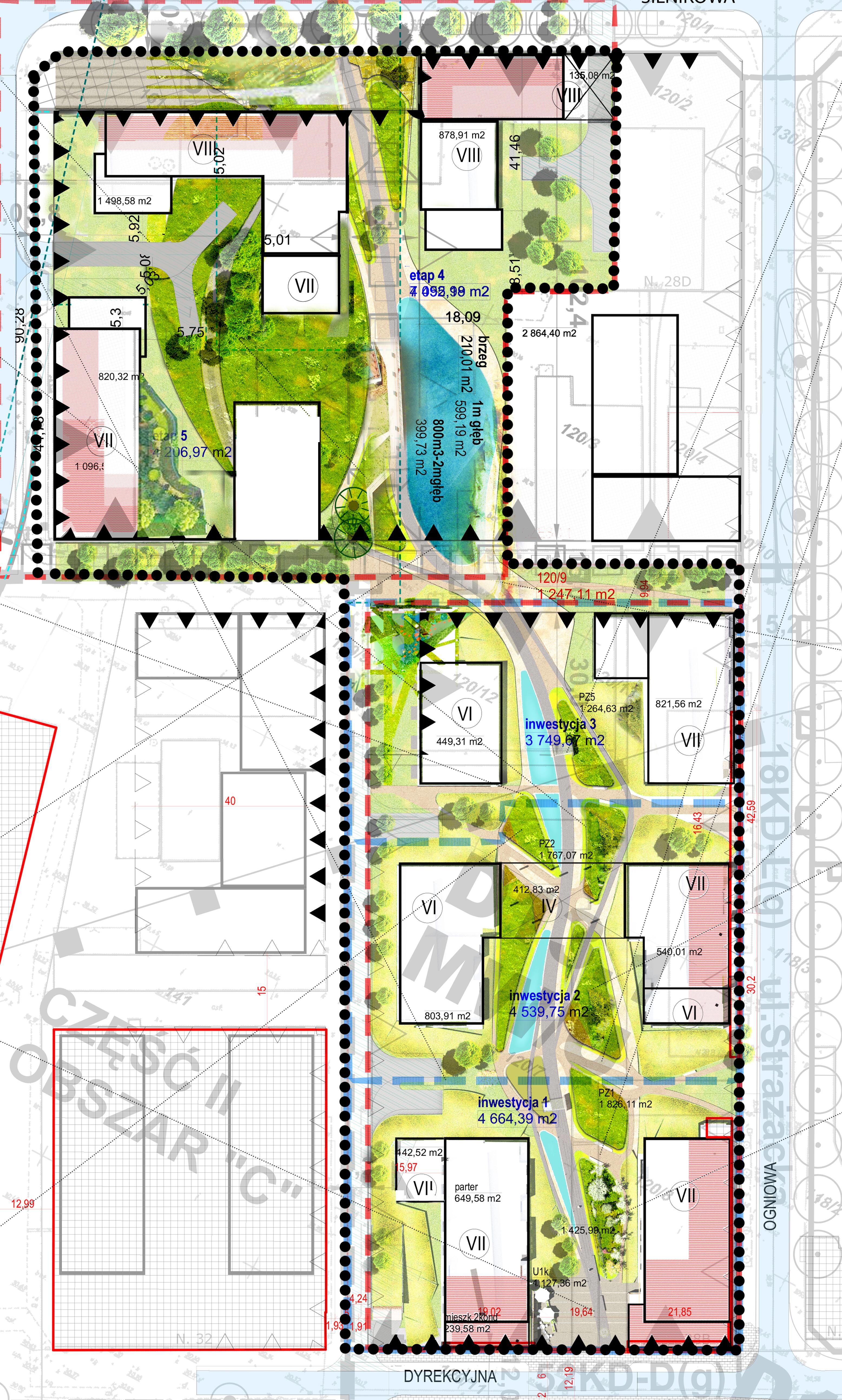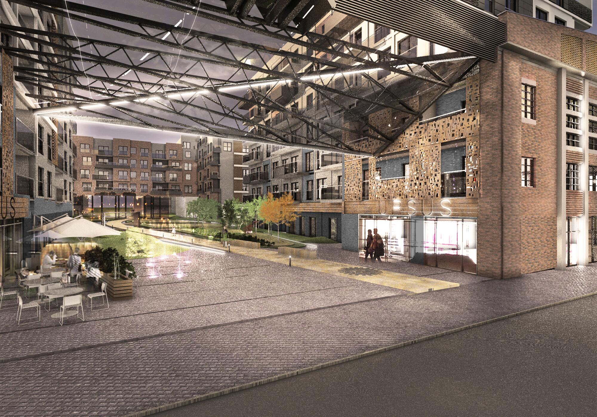 Koncepcja zagospodarowania terenu przy ulicy Dyrekcyjnej z adaptacją reliktów zabudowy pofabrycznej. Budynki liczące 7 kondygnacji tworzą jedna spójną całość z ceglanymi reliktami, w kubatury których zaproponowano wprowadzenie funkcji usługowo-centrotwórczych. Całe osiedle zaprojektowano jako otwarte z wewnetrznym zieleńcem i akwenem wodnym jako przestrzeń rekreacyjna.