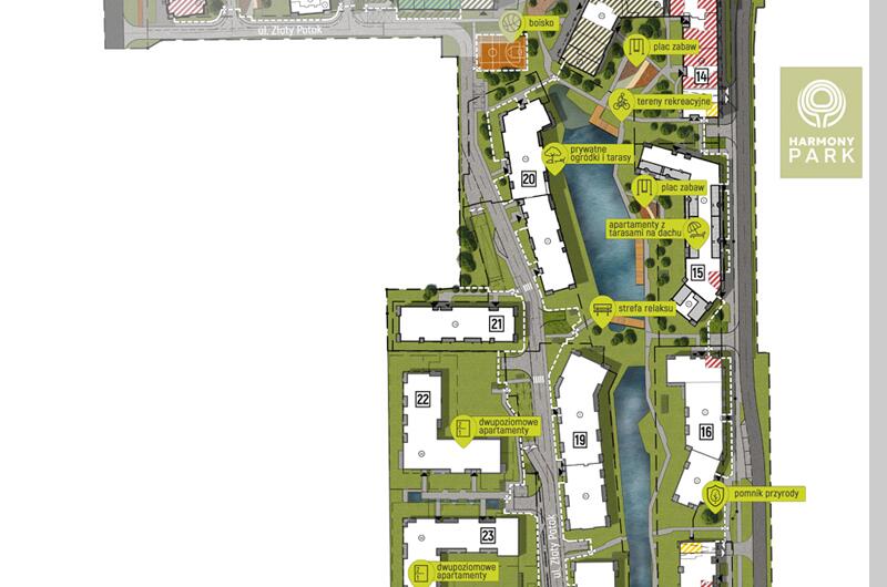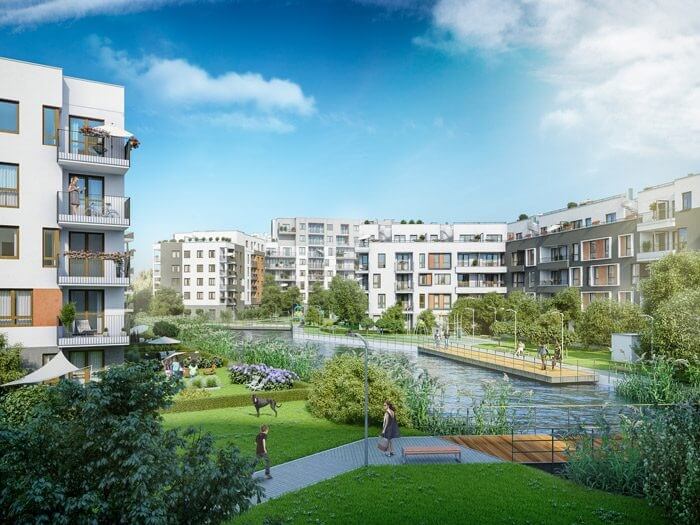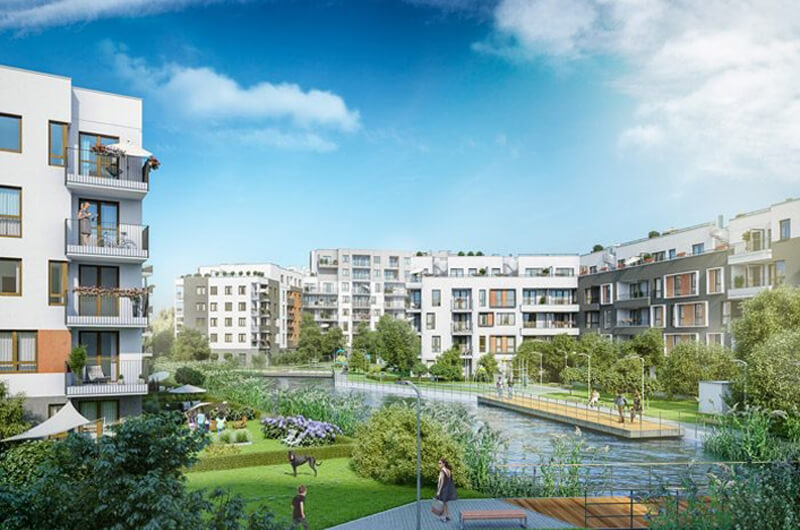 Ostatnia realizowana część osiedla przy Kłobuckiej w Warszawie, obszar całej inwestycji 11 ha, razem 23 budynki.
