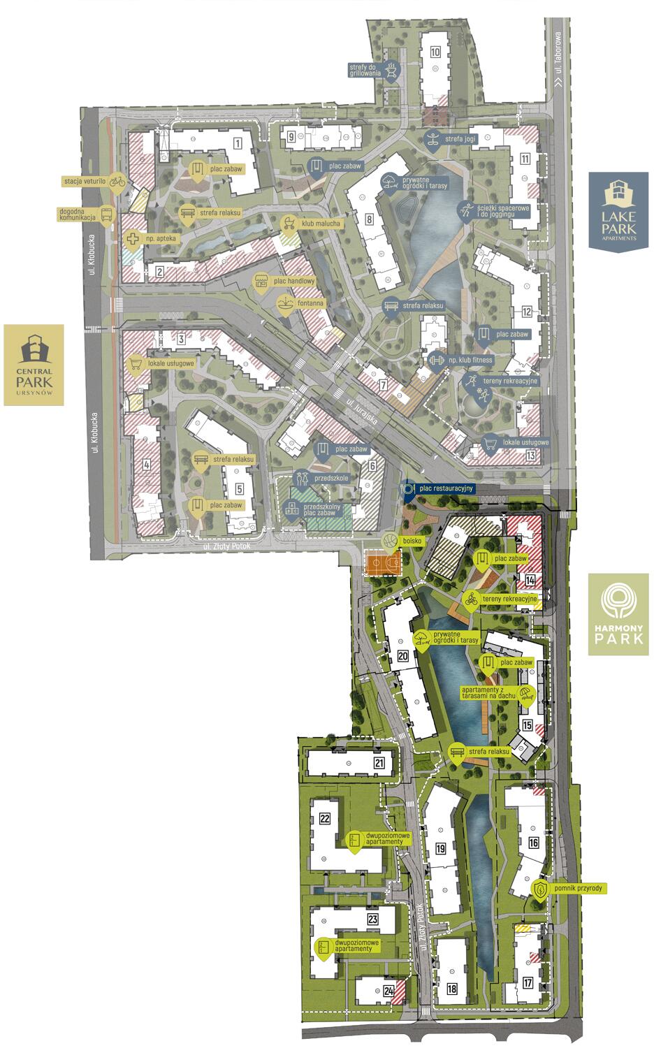 Kontynuacja zabudowy mieszkaniowej przy ulicy Kłobuckiej, której pierwszym etapem był Central Park Ursynów, drugim Lake Park Apartments. Nieregularna, organiczna tkanka zabudowy, funkcjonalne mieszkania oraz urozmaicona, spójna architektura wyróżniają inwestycję. Na południe od wewnętrznej ulicy Juraskiej budynki tworzą niską, kameralną zbudowę wokół zieleńca z jeziorkami.