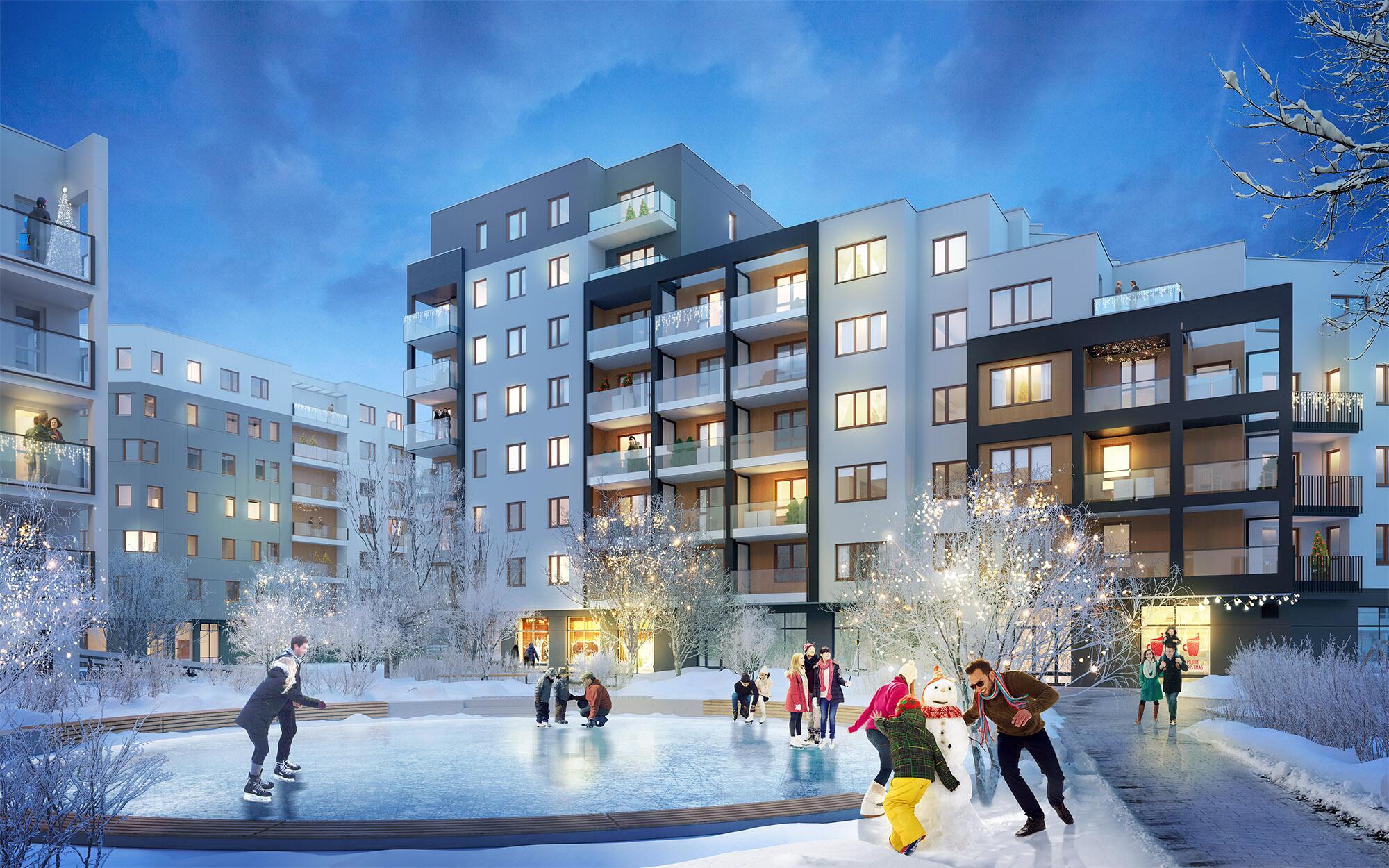 Drugi etap osiedla przy Kłobuckiej w Warszawie, obszar całej inwestycji 11 ha, razem 23 budynki. Powierzchnia użytkowa wynosi 41 000 m2.