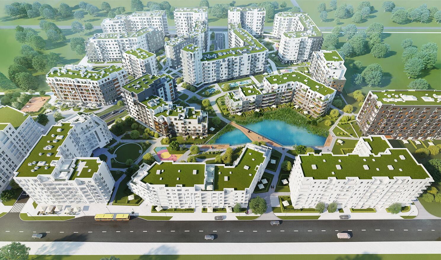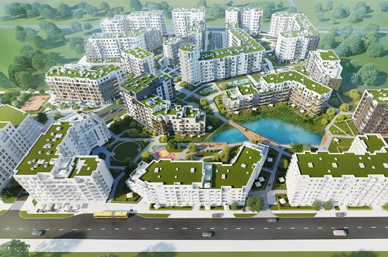 Drugi etap osiedla przy Kłobuckiej w Warszawie, obszar całej inwestycji 11 ha, razem 23 budynki.