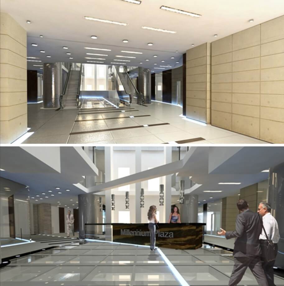 Projekt wnętrza lobby inwestycji Millenium Plaza.