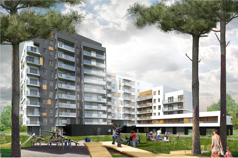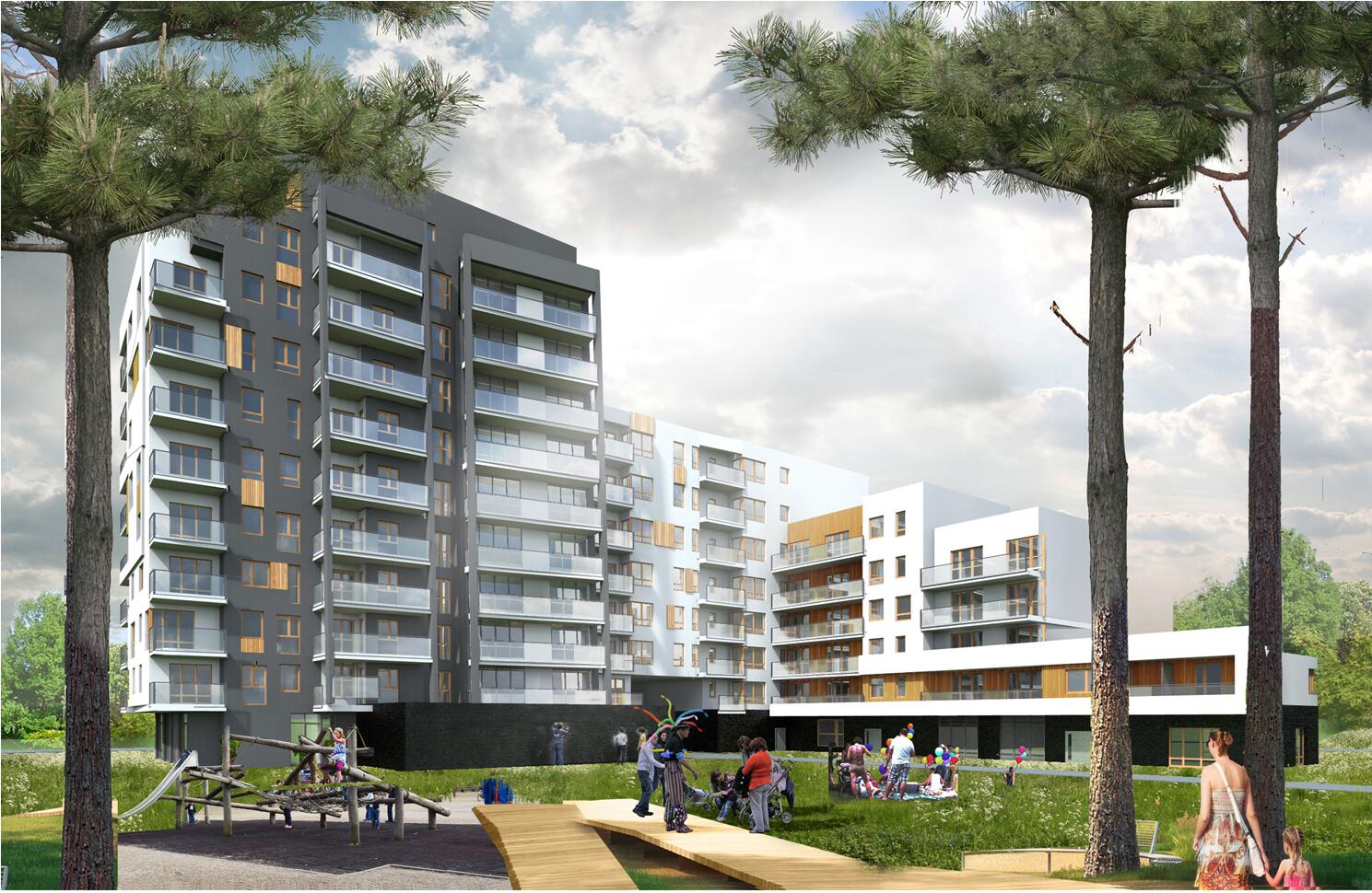 Budynek mieszkalny przy ul. Lindego na Bielanach. Bryłę budynku tworzy 11-kondygnacyjna dominanta w narożniku ulic oraz niższa część ukształtowana tarasowo w głębi działki. Atrakcyjne położenie inwestycji w bezpośrednim sąsiedztwie lasu zainspirowało projektantów do zaprojektowania budynku jako otwartego na otoczenie i spełniającego standardy ekologiczne, poprzez zastosowanie np. rozwiązań energooszczędnych standardu NF40.